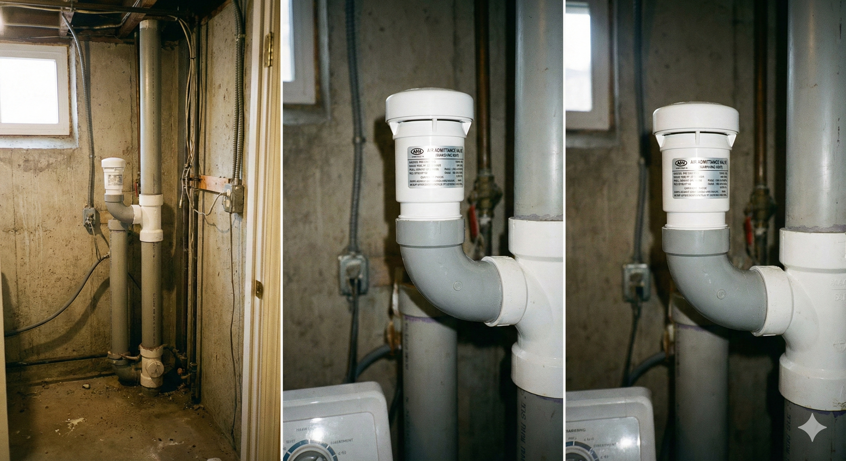 - 물 빠질 때 (부압 발생): 배수가 시작되어 배관 내 압력이 떨어지면, 밸브가 열려서 공기를 빨아들입니다. → 트랩의 봉수 보호