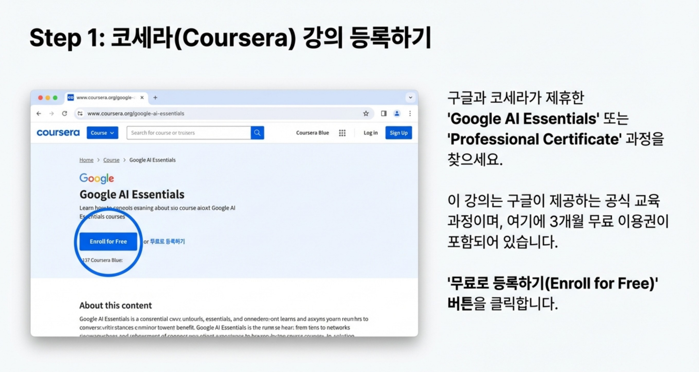 이 방법은 꼼수나 불법이 아닌, 코세라(Coursera) 강좌와 연계된 구글의 공식 프로모션입니다. 이미 많은 분들이 등록해서 혜택을 보고 있으며, 프로모션이 언제 조기 종료될지 모르니 영상이나 글을 보셨다면 지금 바로 신청하시는 것을 강력히 추천합니다.