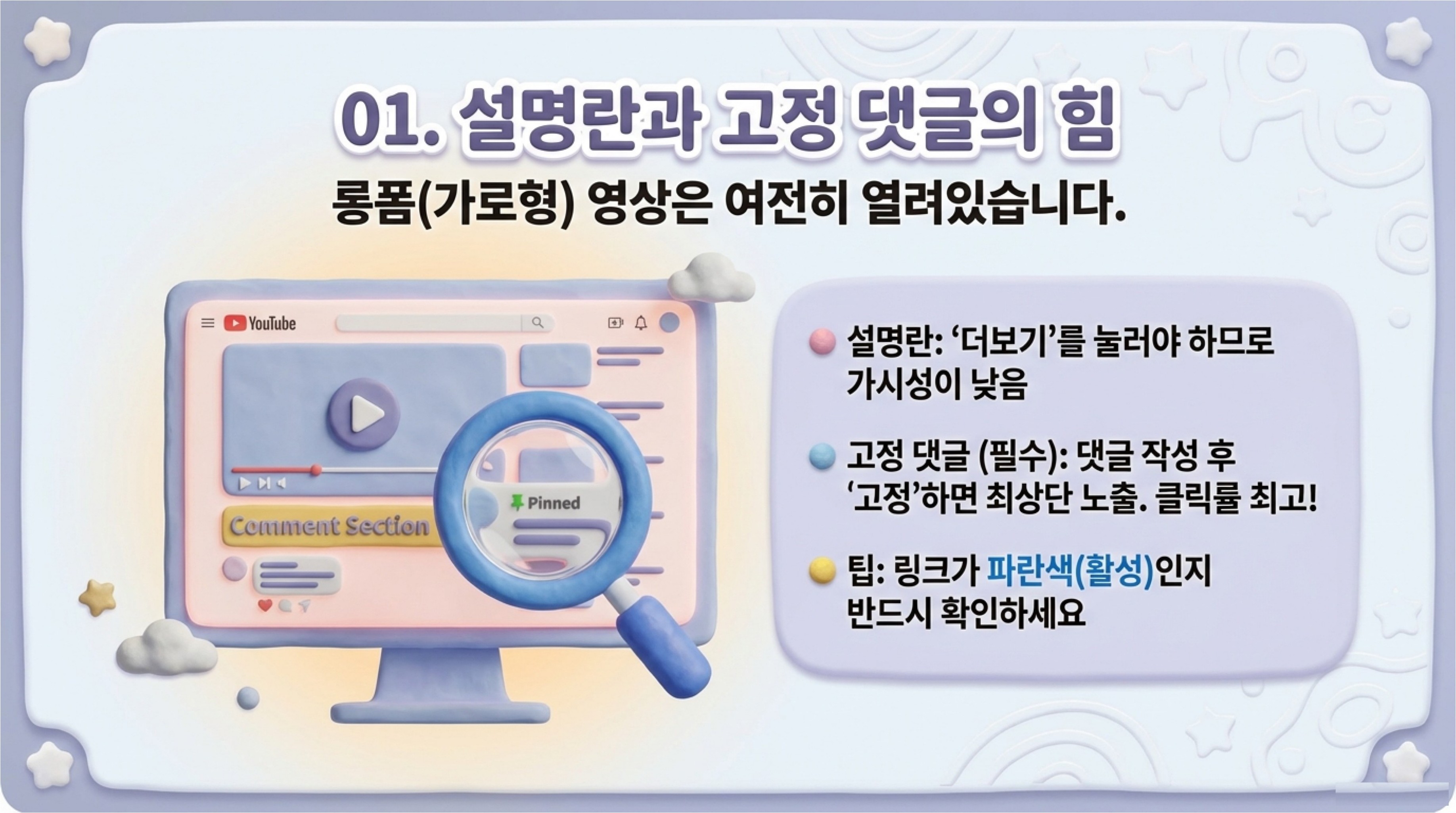 1. 롱폼(가로형) 영상의 설명란 & 고정 댓글 활용